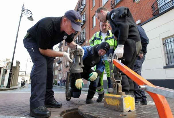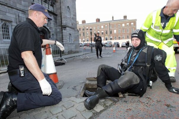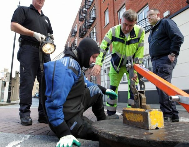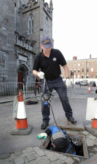Gardaí received a report last night that two men were seen climbing into a manhole near Dublin Castle.
