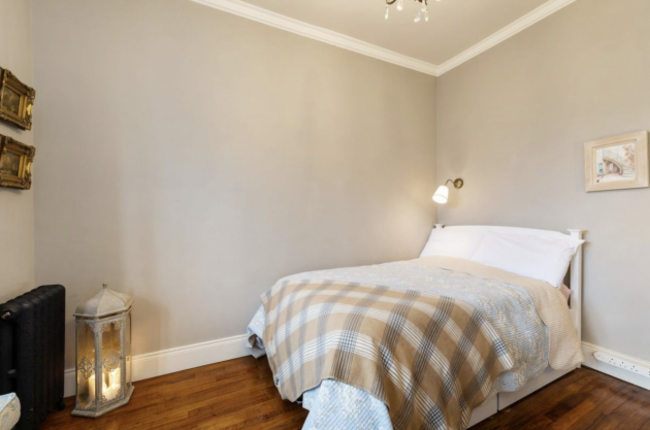 The lodge features two generously sized bedrooms, both with built-in wardrobes and period-style cast iron radiators. A third room, ideal as a study or an extra bedroom, offers more flexibility. There’s also the charming bathroom that combines classic design with modern practicality, featuring a Burlington suite, stylish subway tile  and a deep bathtub with an electric shower.
