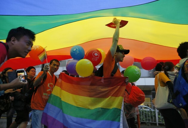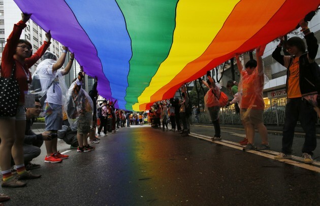 THOUSANDS OF PEOPLE marched through Hong Kong for the city’s gay pride parade today, some of them wrapped in rainbow flags or dressed in drag.