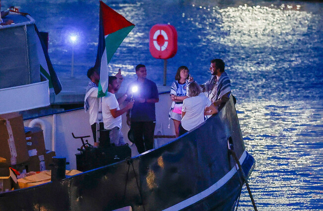 The boat was carrying aid and pro-Palestinian activists. The organisers said that one of their boats was hit by a suspected drone.