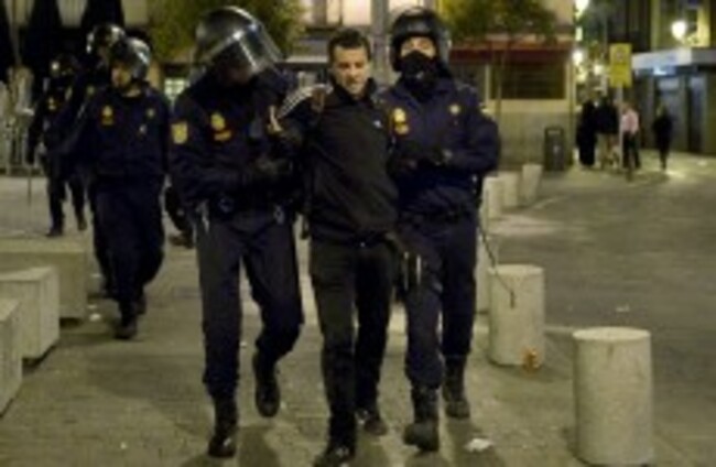 Diaz said a Molotov cocktail was thrown at a police car in the eastern city of Murcia. Of six people injured, one was a police officer and five were civilians. She did not specify where or how these people were hurt.