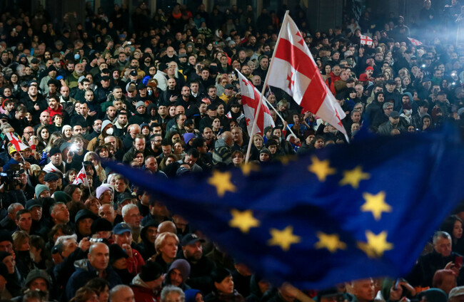 protesters-take-part-in-a-rally-against-alleged-violations-in-a-recent-parliamentary-election-in-tbilisi-georgia-monday-nov-4-2024-ap-photozurab-tsertsvadze Protesters take part in a rally against alleged violations in a recent parliamentary election in Tbilisi, Georgia, Monday, Nov. 4, 2024. Alamy Stock Photo Alamy Stock Photo