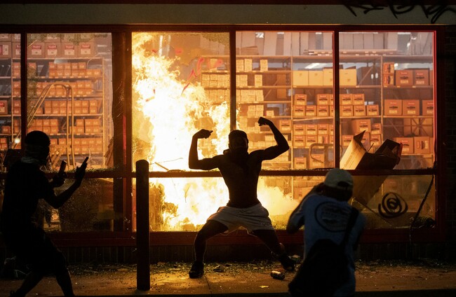 A fire burns at an AutoZone store in Minneapolis on Wednesday Carlos Gonzalez/PA Images