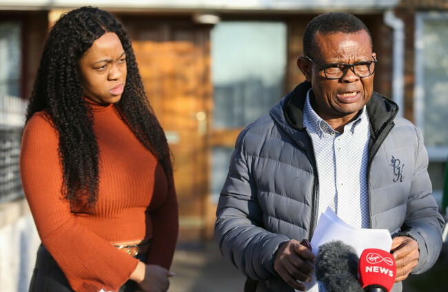 George Nkencho's sister Gloria and father Frank speaking to the media previously. Sam Boal.