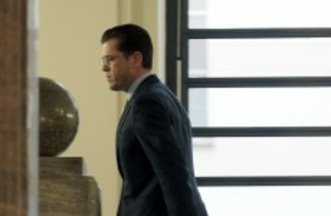 Guttenberg leaves after a news conference where he announced his resignation in Berlin on Tuesday AP Photo/Michael Sohn