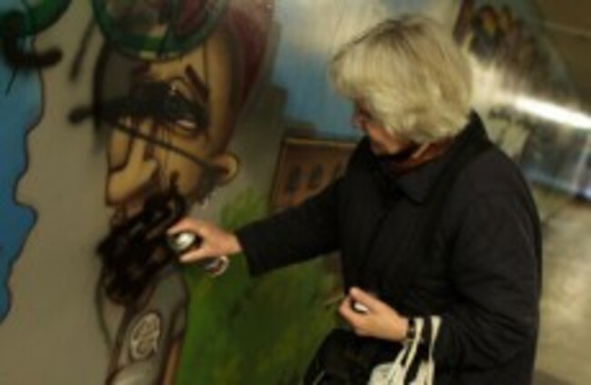 Sixty-five-year-old retiree says she’s given up calling on the police and instead tackles Nazi slogan graffiti herself.