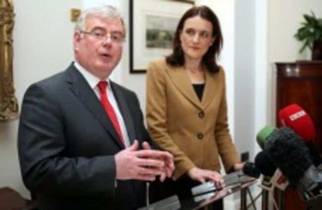 Tánaiste Eamon Gilmore meeting today with the Northern Ireland Secretary, Theresa Villiers. Paul Faith/PA Wire/Press Association Images