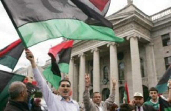 Libyan demonstrators celebrate the rebels' victory at O'Connell St in Dublin this afternoon. Sam Boal/Photocall Ireland