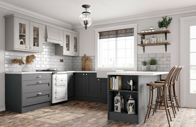 The Augusta kitchen in Light and Dust Grey tones Cash & Carry Kitchens