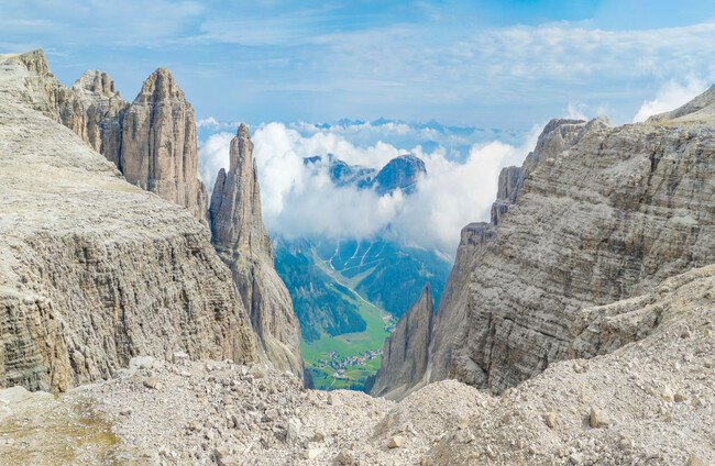 The Marmolada glacier is the largest in the Dolomites mountain range, which is part of the Italian Alps and situated on the northern face of Marmolada.
