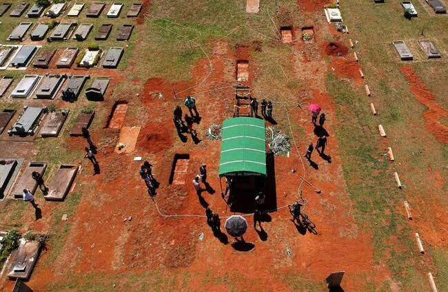 A family attending a burial service in Brasilia, Brazil. PA