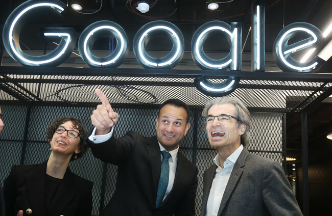 1326 Taoiseach at Google_90536528 Taoiseach Leo Varadkar with Google Ireland's Fionnuala Meehan and Gareth Morgan Leah Farrell / RollingNews.ie Leah Farrell / RollingNews.ie / RollingNews.ie