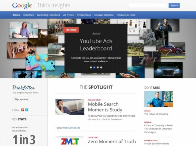 6. Google Think is a site for advertisers and similar professions to get marketing insights and inspiration straight from Google.