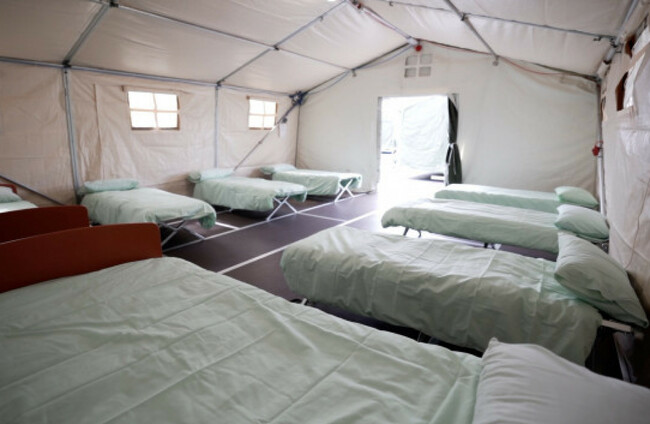 The site at Gormanston in Co Meath is using Defence Forces marquee tents, with most set aside for beds but some for recreation and food. Around 16 people may be sleeping in one tent.