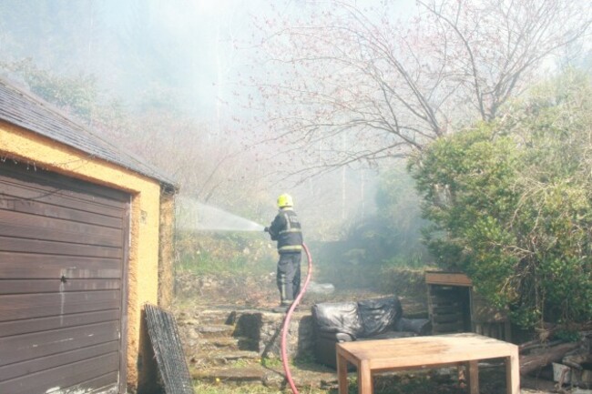 IMG_1949 A firefighter attempting to douse the flames last Wednesday. Brendan Beirne Brendan Beirne