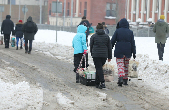 People walking in the snow during Storm Emma in March. Eamonn Farrell