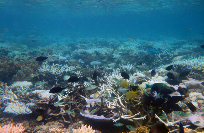 File photo - Shallow bleached coral reef, Great Barrier Reef, Queensland, Australia, in March 2017 Alamy Stock Photo