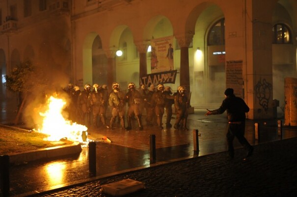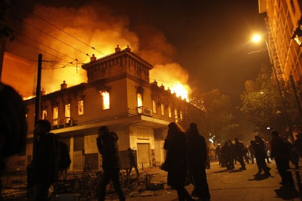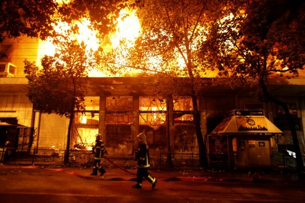 There was also violence reported in six other cities. The town hall and tax office in Volos were set on fire and damaged.