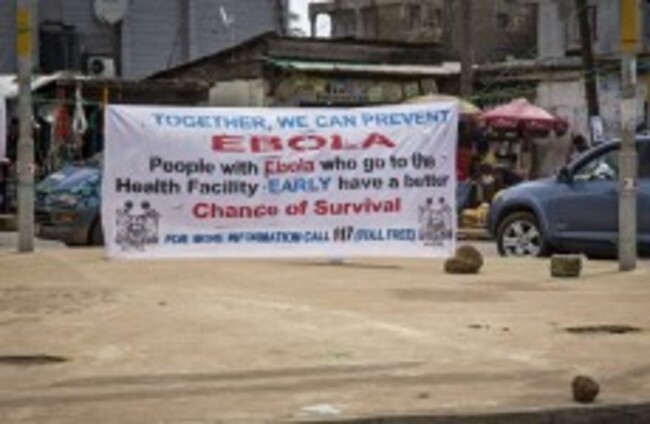 A banner in Sierra Leone encouraging those suffering from Ebola to go to the health centre. AP/Press Association Images