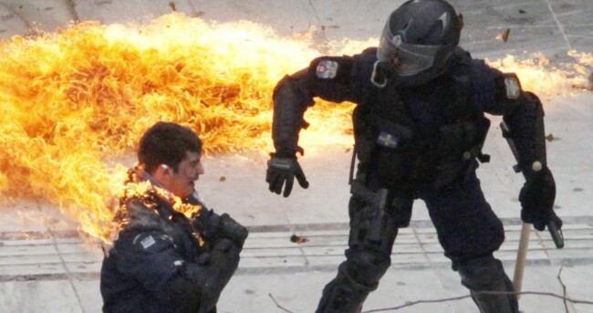 POLICE IN ATHENS have fired tear gas in attempts to disperse protesters, as violence scenes broke out amid a national day of strike action in protest at government spending cuts.
