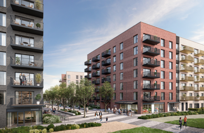 The mixed use scheme also includes office floorspace, six retail units, a creche and an urban square.