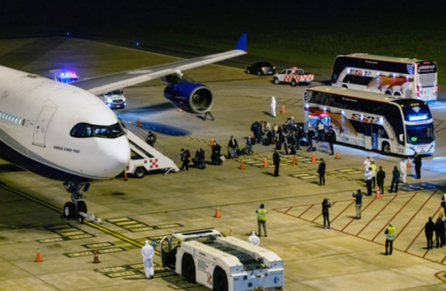 “This is (like) winning a World Cup,” Uruguay’s Foreign Minister Ernesto Talvi tweeted alongside a video of four buses – flanked by a police escort with blaring sirens – taking the roughly 110 passengers to the airport.