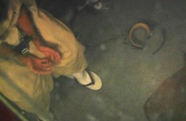 In this April 16, 2013 video frame grab reviewed by the U.S. military, a shackled detainee meets with medical personnel in Camp 6, at Guantanamo Bay Naval Base, in Cuba. Suzette Laboy/AP/Press Association Images