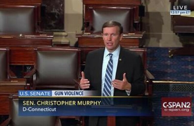 Murphy is seeking a vote on legislation from Feinstein that would let the government bar sales of guns and explosives to people it suspects of being terrorists. Feinstein offered a similar version of the amendment in December, a day after an extremist couple killed 14 people in San Bernardino, California, but the Republican-run Senate rejected the proposal on a near party-line vote. Murphy also wants a vote to expand background checks.