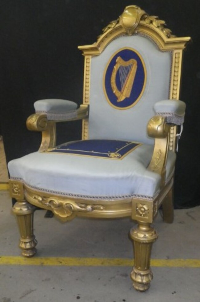 The viceregal throne was initially used for British viceroys or lord lieutenants but was changed ahead of Hyde’s inauguration. Alterations included removing the crown and replacing it with the Irish harp.