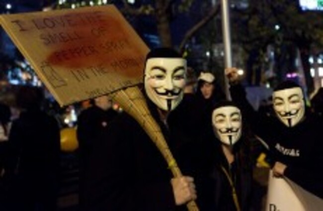 The Guy Fawkes mask has come to symbolise the Anonymous hacking movement. John Minchillo/AP/Press Association Images