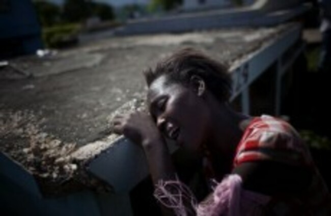 A relative of a 12-year-old cholera victim in Haiti mourns at her graveside