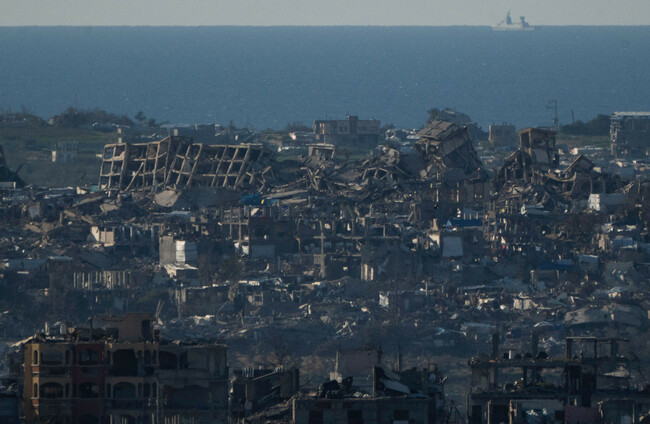 Buildings in Gaza destroyed by Israel's air and ground offensive, photographed yesterday. Alamy