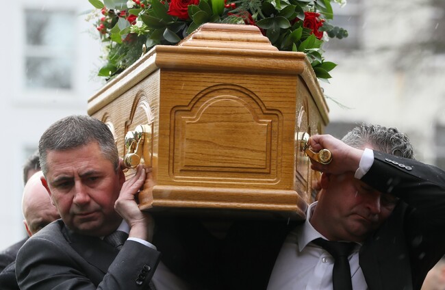 The coffin arriving at St Patrick's Church in Coleraine. Brian Lawless/PA Images