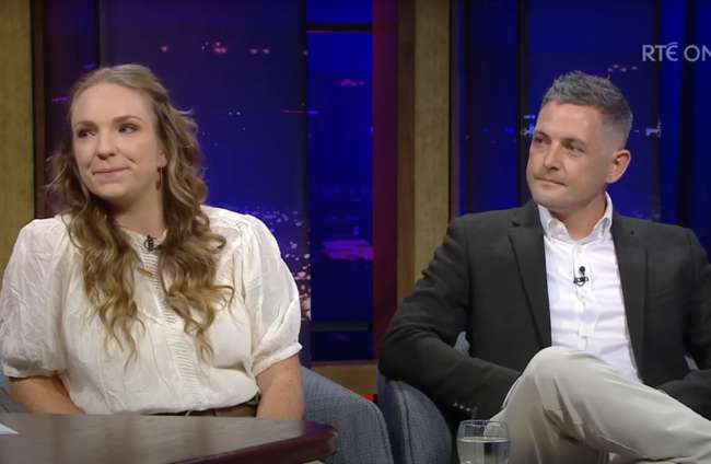 Harvey Morrison Sherratt's parents, Gillian Sherratt and Stephen Morrison pictured on the Late Late Show. RTÉ