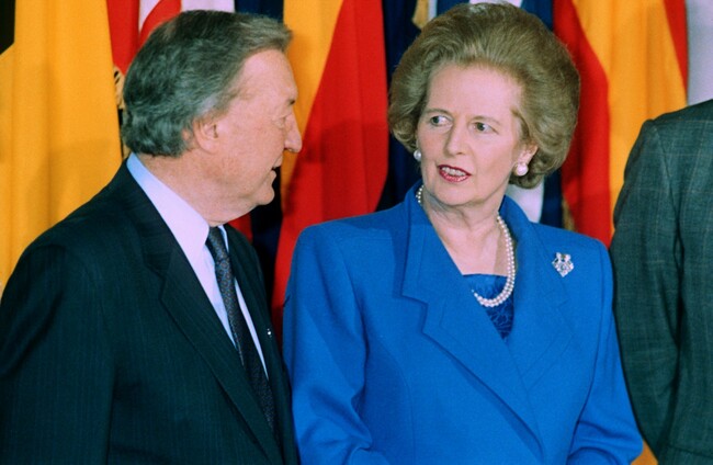 Charles Haughey and Margaret Thatcher in April 1990. DPA/PA Images