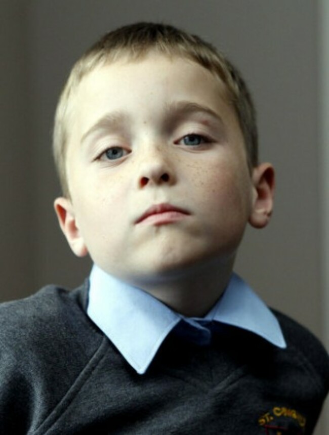 Brendan Shannon, 8, at his home, after he found a pipe bomb lying in the playground at his school.