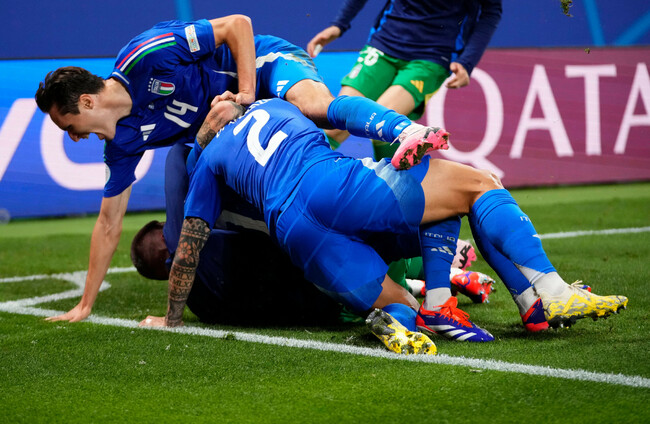 Azzurri forward Mateo Retegui’s header was deflected narrowly wide at the other end on a rare forray forward, with the two-time winners happy to slow the game down and waste time at corners and throw-ins as early as the 20th minute.