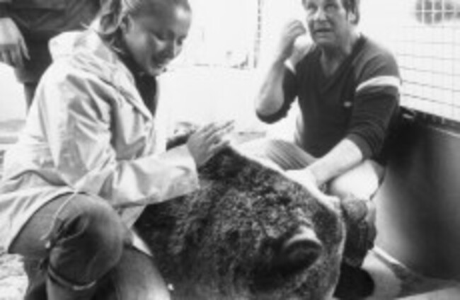 Hercules with his owner's Andy and Maggie Robin after being shot with a tranquillizer gun in 1980. PA ARCHIVE IMAGES