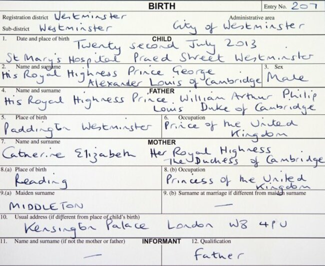 The birth registration of the Prince George of Cambridge has been released. We had a little chuckle at the occupations of parents, William and Kate: