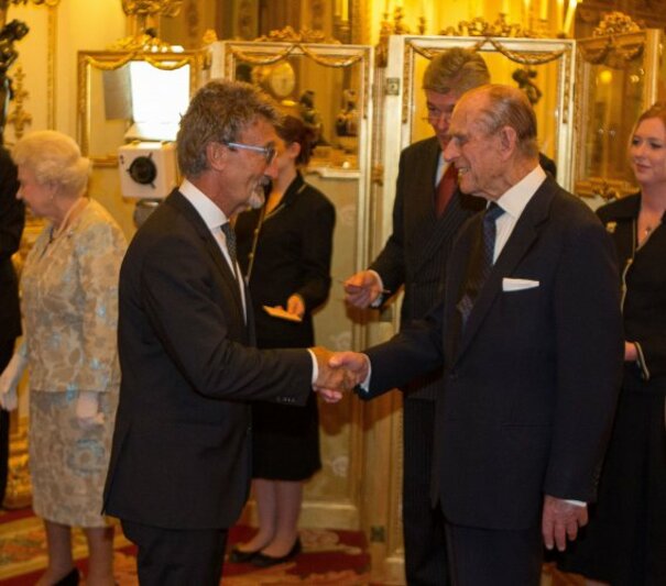 Source: The Duke of Edinburgh meets Eddie Jordan (left) at a reception for the Irish community at Buckingham Palace, London." title="">