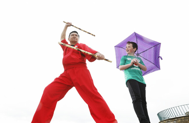 JJ doyle (11) watches Modesto llanera performing Arnis, a martial art of the Philippines, on Dún Laoghaire Pier at the launch of the Festival of Inclusion . RollingNews.ie
