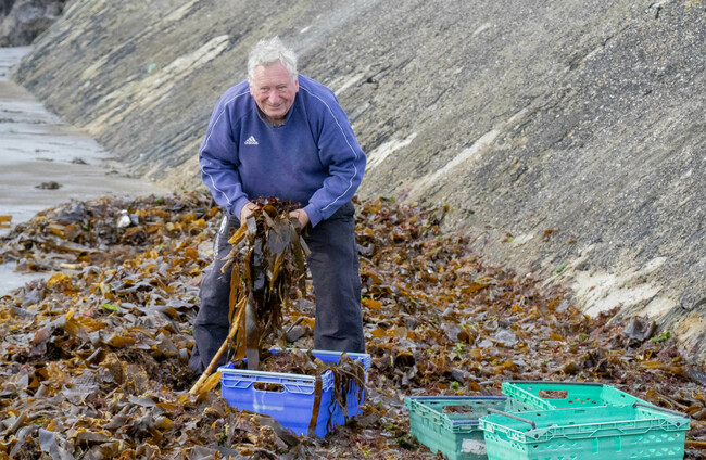 Leo Foley from Castlehaven Parish, West Cork, collecting seaweed for his garden after Storm Amy pushed it onto the shore Andrew Harris