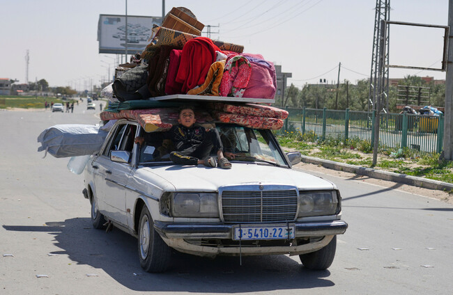 Displaced Palestinians, who flee from Rafah, arrive in Khan Younis, Gaza Alamy