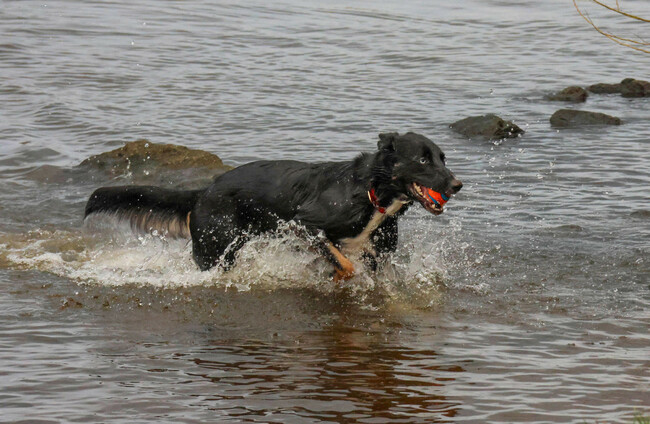 A dog retireving a ball from South Lake, Craigavon in Armagh today Alamy