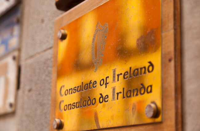 File photo of a sign outside the Irish Consulate in Santa Cruz de Tenerife Alamy Stock Photo