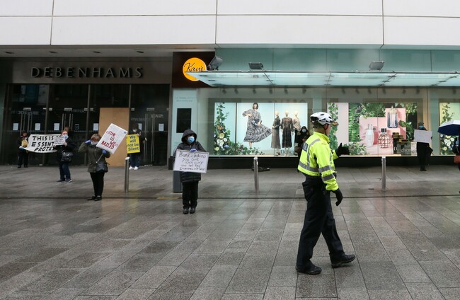 However, a small number of people supporting the Debenham’s workers held a peaceful protest outside the Four Court complex this morning.