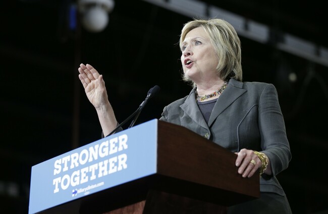 Clinton speaking during a rally earlier this week AP Photo/Chuck Burton