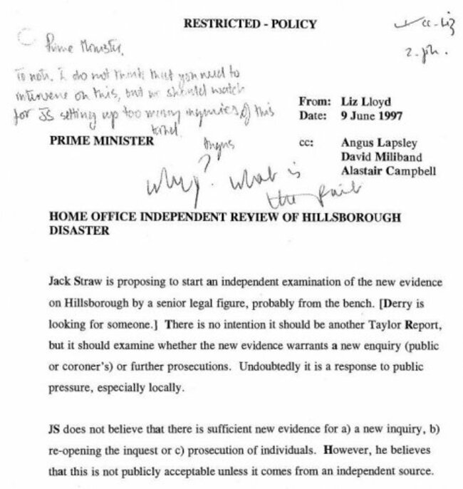 Stuart-Smith was effectively tasked with determining whether or not there was sufficient evidence for a new public inquiry to be held into the Hillsborough disaster as the families argued. But the documents outline the belief of the government which appointed him that his task was perfunctory and would yield no new evidence.