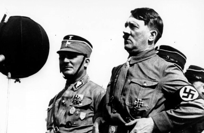German chancellor Adolf Hitler speaking to 30,000 uniformed Nazi storm troopers at Kiel, Germany in 1933. AP/Press Association Images