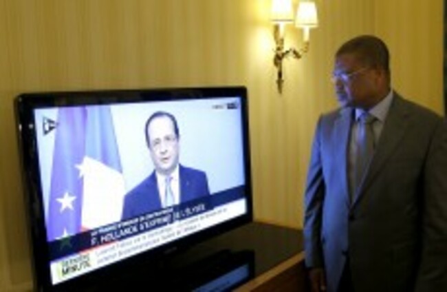 Prime Minister of the Central African Republic Nicolas Tiangaye watches French President Francois Hollande on TV Christophe Ena/AP/Press Association Images